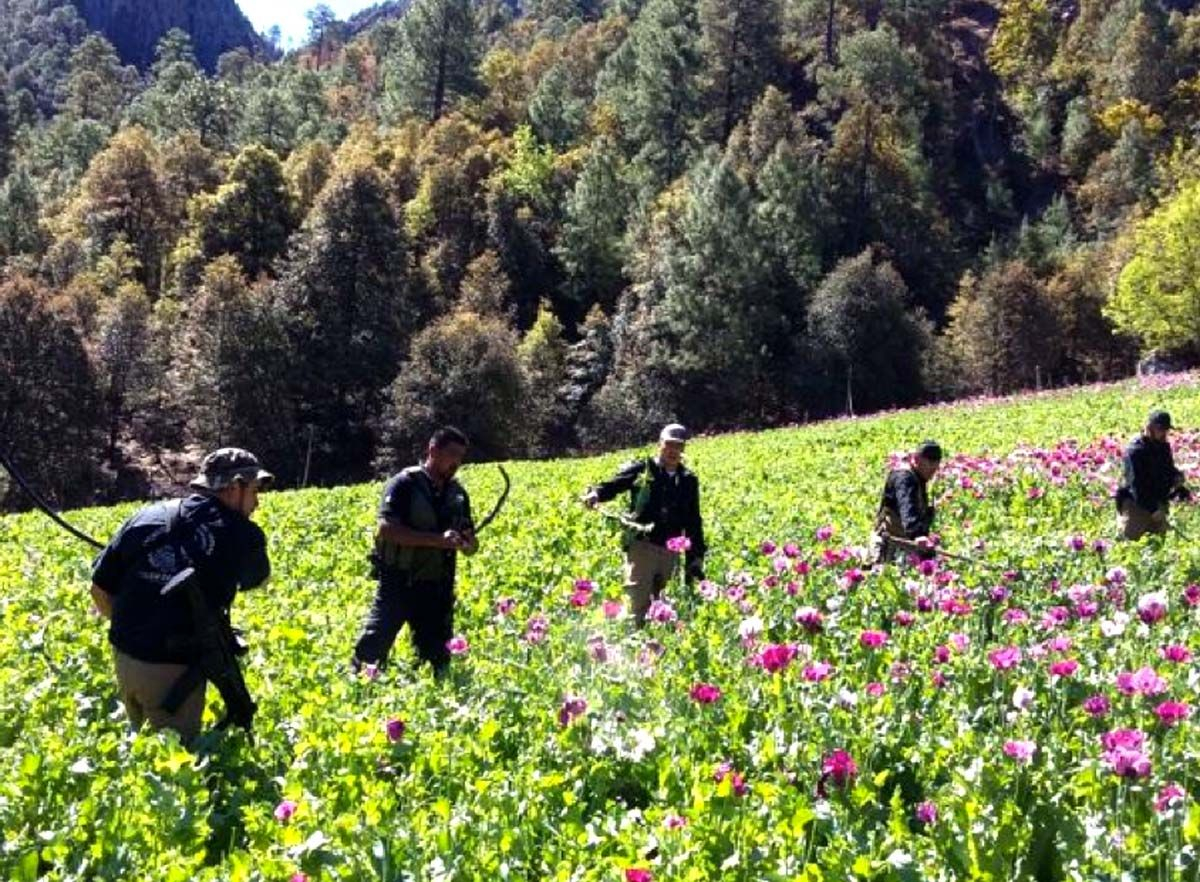 La Fiscalía General del Estado destruyó un plantío de amapola en la sierra del municipio de Guadalupe y Calvo como parte de las acciones que realizan los agentes de la Policía Estatal Única división Investigación en el combate a las actividades delictivas.